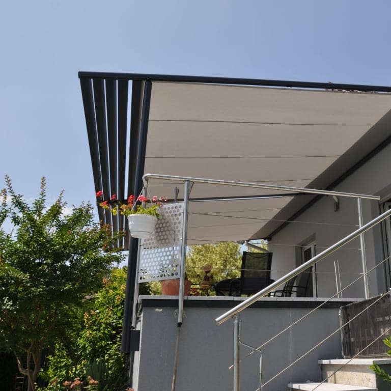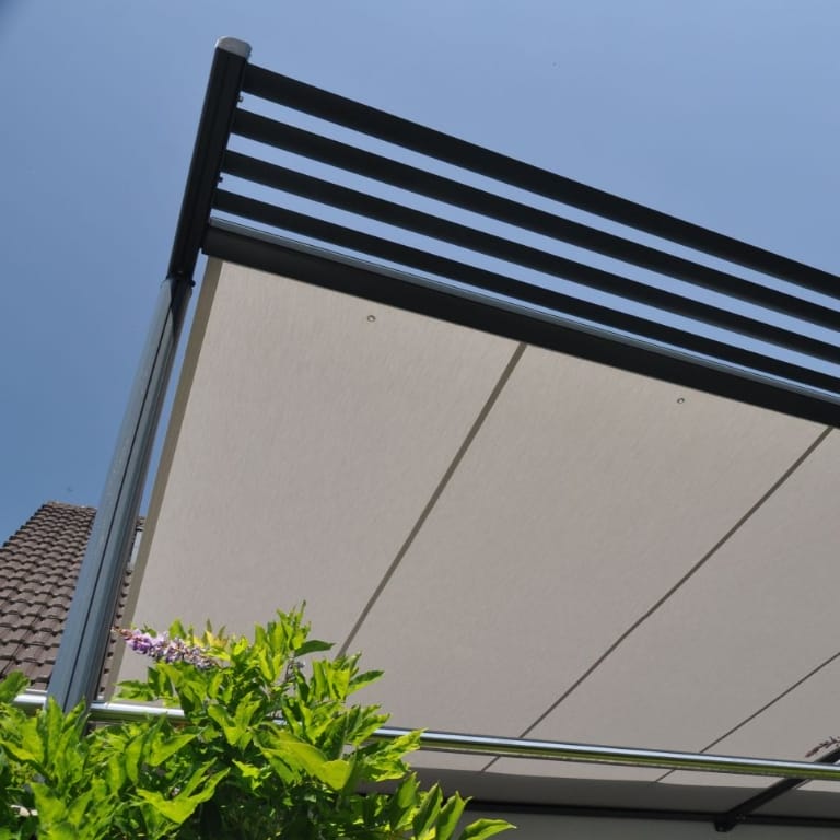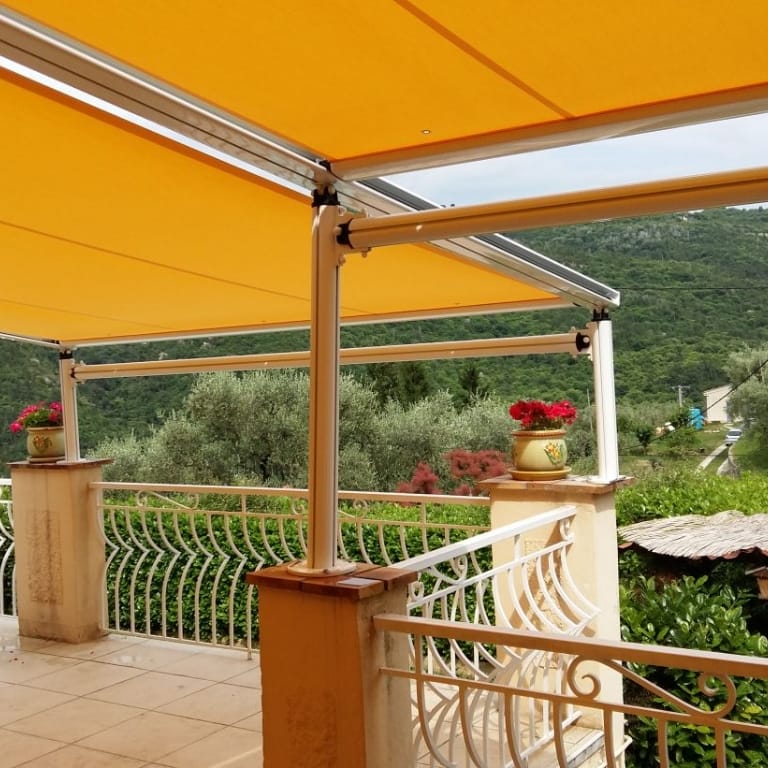 La toile rétractable en acrylique teintée dans la masse avec un grammage de plus de 250gr/m2 permet une protection à la fois contre les UV mais également contre la chaleur.