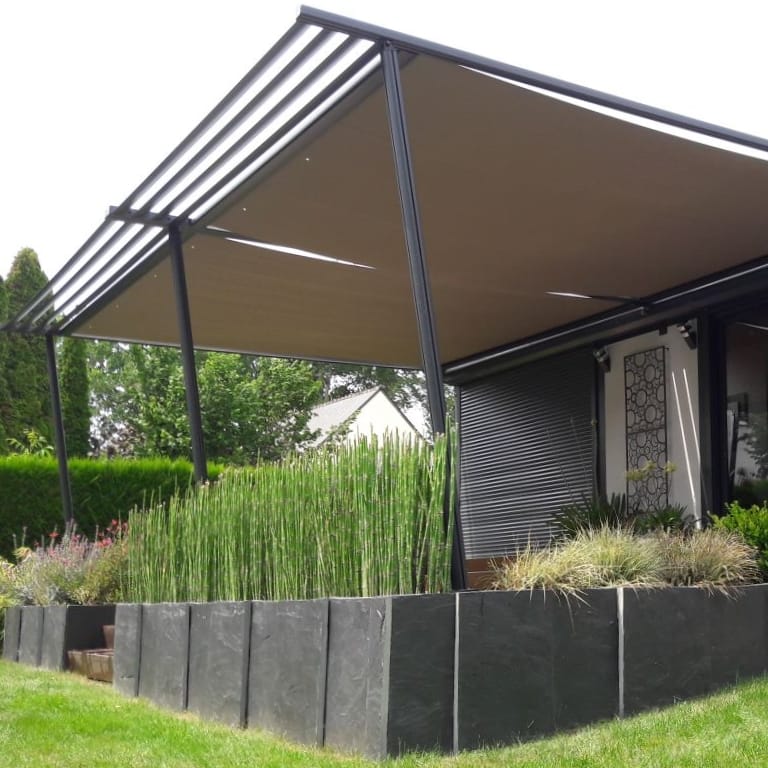 Nos pergolas résistent au vent et aux intempéries grâce à une conception en alu renforcé et un choix de sections adaptées à la région et à la configuration de votre projet.