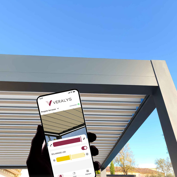 Controlée votre pergola bioclimatique depuis la plage ou du bureau. Recevez des notification et alertes en cas d'intempéries.