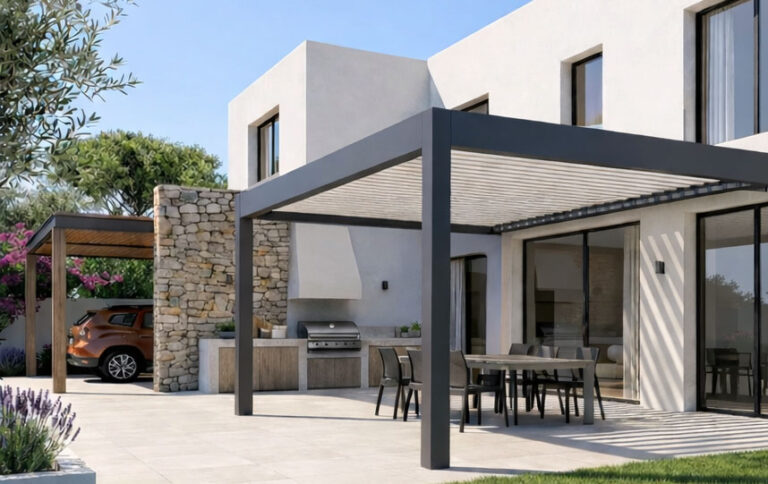 Nos modèles de pergola bioclimatique ont été conçus dès l’origine pour offrir de grandes portées sans aucune rupture, grâce à une structure monobloc parfaitement dimensionnée. Cette conception vous autorise à sublimer votre terrasse avec des dimensions remarquables.
