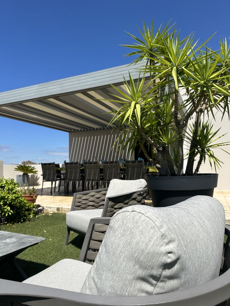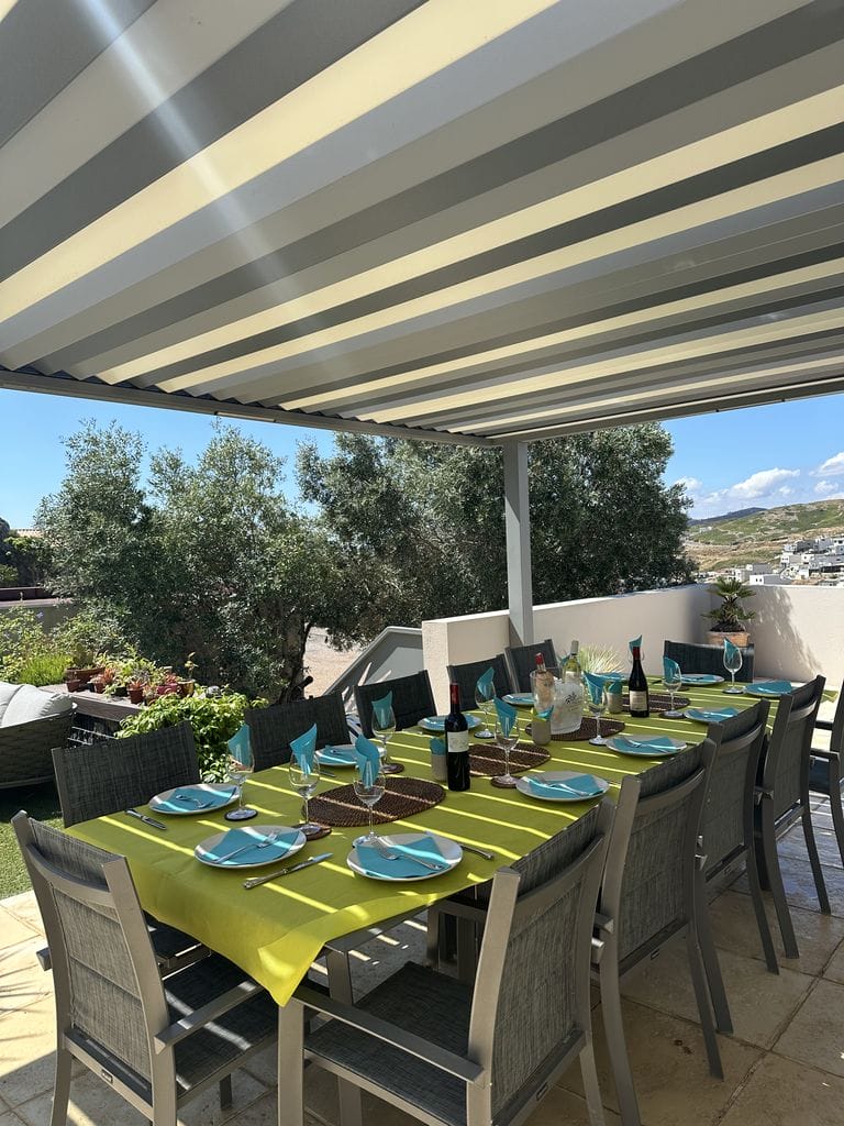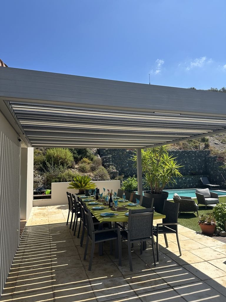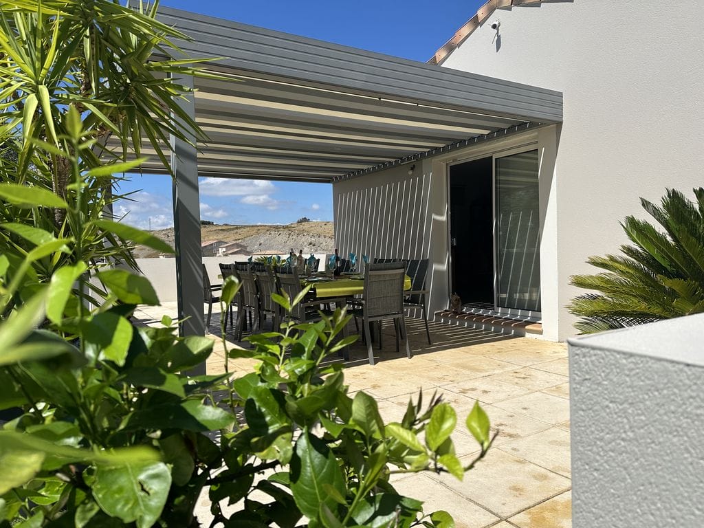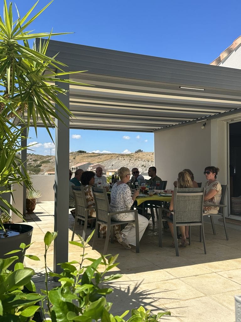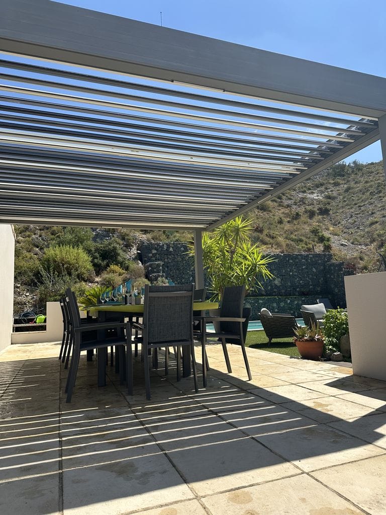 Une pergola installée sur les hauteurs de Narbonne, pensée pour offrir à la fois confort, esthétisme et harmonie avec l’environnement naturel. Les lignes épurées de la structure s’allient parfaitement à la vue panoramique, créant un espace extérieur unique où lumière, ombre et air circulent librement. Chaque détail a été travaillé pour garantir robustesse, durabilité et élégance. La pergola transforme la terrasse en un véritable lieu de vie à ciel ouvert.