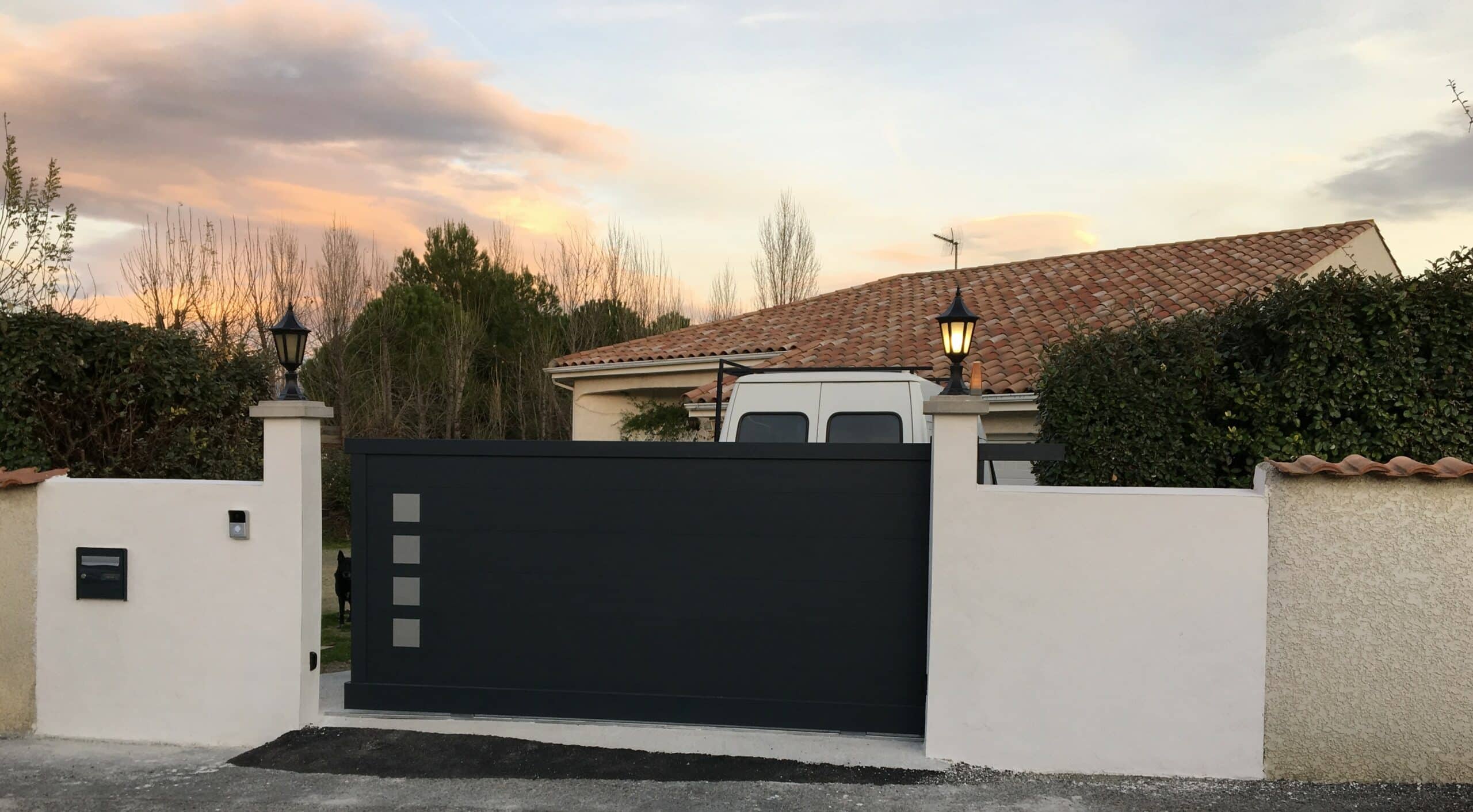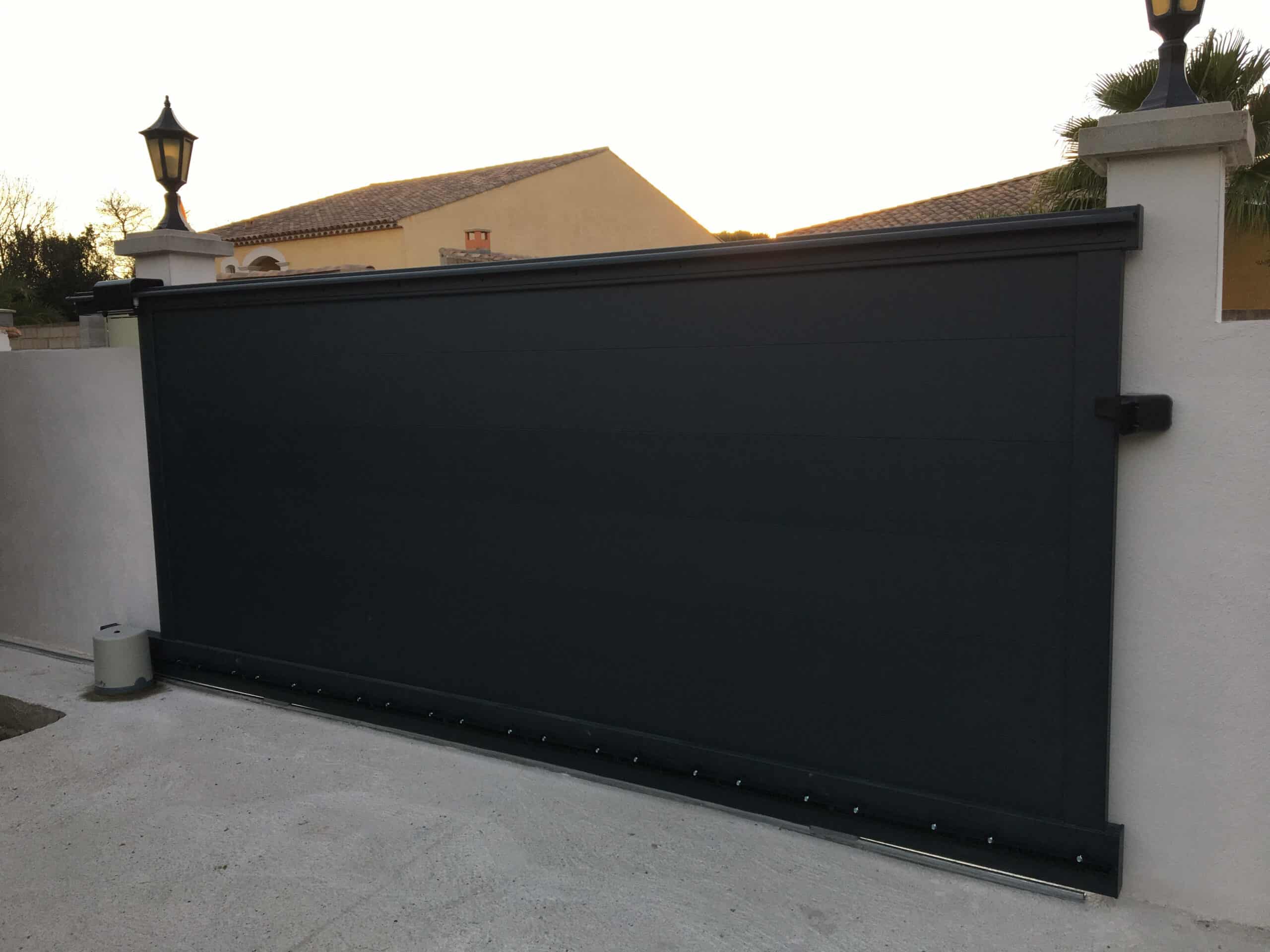 Voici un portail coulissant motorisé sur-mesure que DS MENUISERIE a posé avec son équipe de poseurs qualifiés à Montredon les Corbières, à côté de Narbonne.